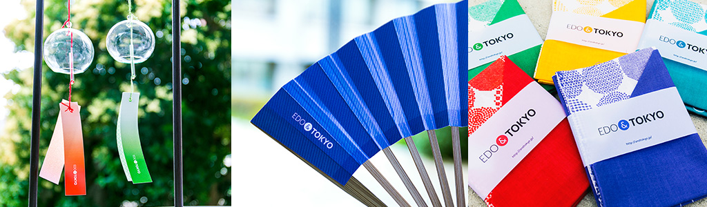 「例えば、扇子は“EDO&TOKYO”のロゴが折り目にのらないよう、なんどもサンプルを制作して位置を決めたり、風鈴につく短冊もさまざまな紙質を検討したりしました。てぬぐいは色出しがなかなか難しかったですね」と振り返るのは、株式会社CUCサポートの三村英夫さん。信頼関係のある職人たちとのやり取りを始め、あらゆる面で今回のプロジェクトをまとめました。「職人の方たちも真摯に取り組んでくださって、江戸と東京を繋ぐものづくりができたと思っています」。