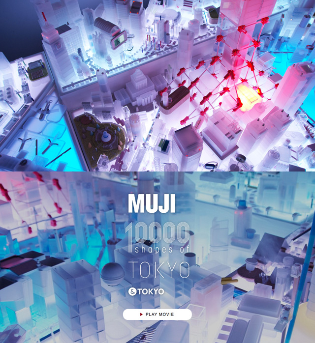• こうして東京の魅力を世界へ発信した「MUJI 10,000 shapes of TOKYO」ですが、http://tokyo.muji.com/ja/や、動画投稿サイト「YouTube」において、「無印良品」の販売商品がどのように東京の街並みとして組み立てられているかがわかるムービーを公開しています。