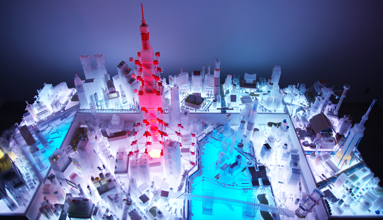 赤く浮かび上がる東京タワーに東京都庁、渋谷のスクランブル交差点。なじみ深い東京のランドマークや、象徴的な街並みを再現したジオラマのパーツはなんと、「無印良品」にて実際に販売している10,000点もの商品!東京ブランドを海外に向けてPRする展示イベント「MUJI 10,000 shapes of TOKYO」が、2016年3月5日(土)~13日(日)に台北で、3月19日(土)~4月24日(日)にはニューヨークと、「無印良品」の各店舗にて開催されました。