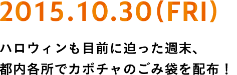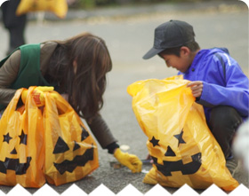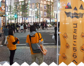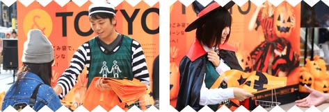 2015年10月30日(金)~31日(土)、ハロィン本番に向けて新宿・渋谷・六本木・秋葉原にて、カボチャのごみ袋を配布し、ごみの持ち帰りを呼び掛けました。