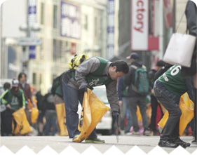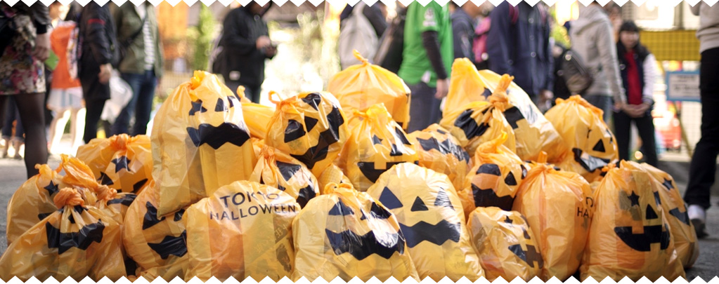 お祭りの後は、新宿・渋谷・六本木・秋葉原にて、カボチャのごみ袋片手にボランティアスタッフによるごみ拾いが実施されました。