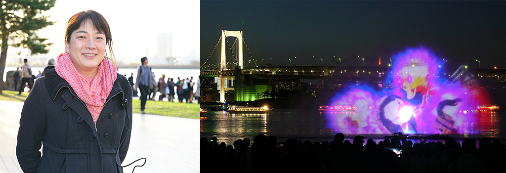 お台場海浜公園の水辺に幅40メートル、高さ20メートルの巨大なウォータースクリーンをつくり、葛飾北斎の浮世絵をテーマにプロジェクションマッピングを実施。江戸の美しさを描いた浮世絵が最新のテクノロジーによってクールにアレンジされ、一夜限りの特別映像で東京の魅力を表現しました。