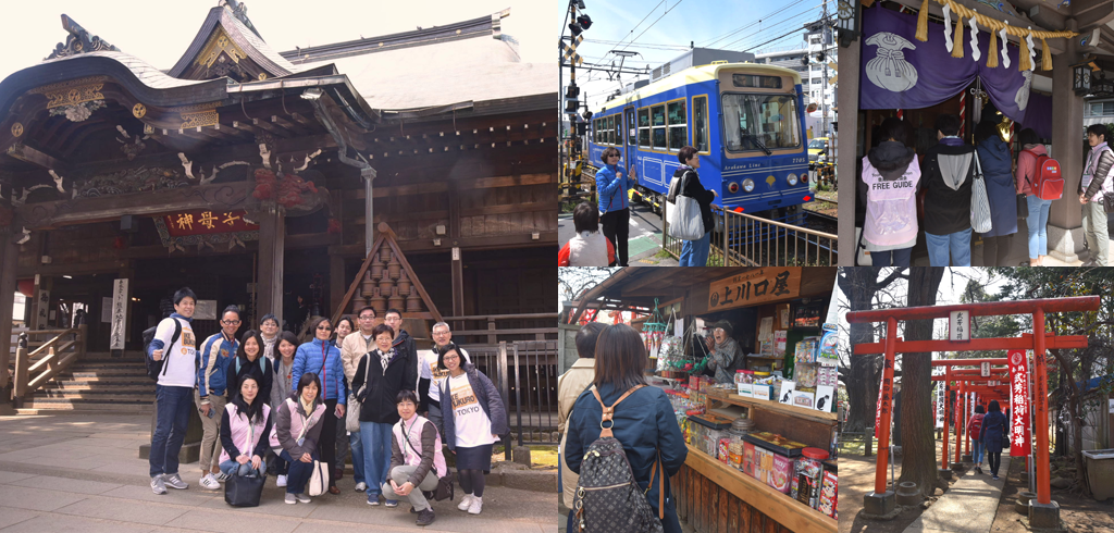 体験イベントでは、いろいろな街歩きも開催。そのひとつが、賑やかな街中とは表情の違う、歴史と下町情緒のある雑司ヶ谷エリア散歩です。集合場所のサンシャインシティプリンスホテルからスタートし、「都電荒川線・雑司ヶ谷駅」、「大鳥神社」、「鬼子母神堂」、「法明寺」を散策するコース。3月25日(土)は台湾やミャンマーなどから来日した旅行者10人ほどが参加しました。