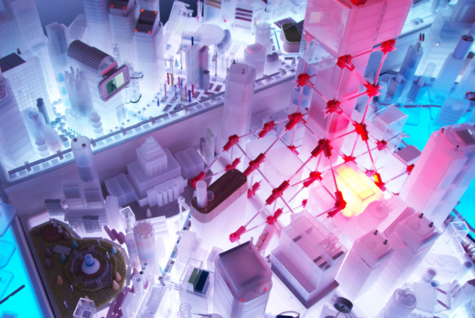 赤く浮かび上がる東京タワーに東京都庁、渋谷のスクランブル交差点。なじみ深い東京のランドマークや、象徴的な街並みを再現したジオラマのパーツはなんと、「無印良品」にて実際に販売している10,000点もの商品!東京ブランドを海外に向けてPRする展示イベント「MUJI 10,000 shapes of TOKYO」が、2016年3月5日(土)~13日(日)に台北で、3月19日(土)~4月24日(日)にはニューヨークと、「無印良品」の各店舗にて開催されました。
